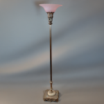 > Brass Torchiere Floor Lamp w/ Pink Shade
