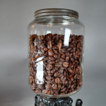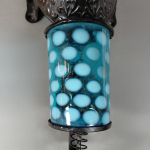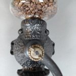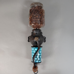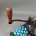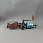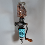 Circa 1915 Wall Mount Coffee Grinder w/ Blue Blown Glass Tumbler