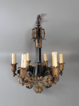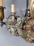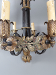 > European Six-Light Gilded Wrought Iron Chandelier with Leaf & Berry Motif