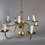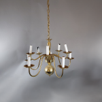> Ten-Arm Colonial-Revival Style Brass Chandelier