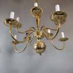 Ten-Arm Colonial-Revival Style Brass Chandelier