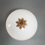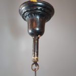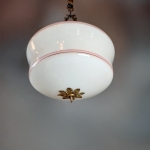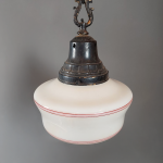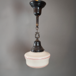 > 1930s–40s Black Painted Ceiling Light w/ Milk Glass Shade and Red Banding